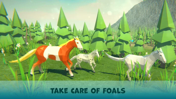 Don't forget to keep an eye on your horse's hunger and health, and do various tasks! This application allows you to customize your wild horse and its family, choosing from a variety of skins. You can also create a large family for your horse, find a partner, and even have babies. Your family will always be by your side, providing protection during fights with other animals. However, be cautious as powerful predators like tigers, wolves, and bears can harm your family and even cause you to lose a member. To ensure your horse and its family are strong and invincible in the forest, you can improve their characteristics. As you journey through the forest, you will encounter a variety of creatures, making your experience even more exciting. The open world feature allows you to explore different locations, from beautiful forests to fields and beaches. In addition to exploring, you can also complete interesting missions in the forest to gain experience and gold. By picking up boxes along the way, you can also receive bonuses. The application features a beautiful low poly style, with a detailed and well-crafted world for you to enjoy. So, play and have fun while trying to be original and SEO-oriented. Keep your horse and its family happy and healthy while completing tasks and exploring the open world.