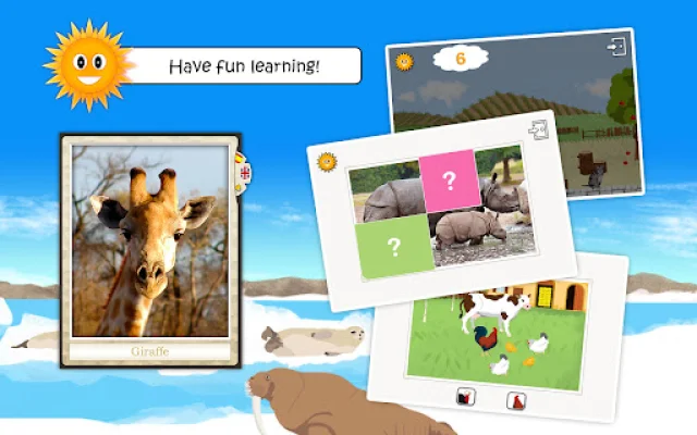 This app is the most comprehensive educational game about animals, with a wide range of features to enhance learning. With 192 animals from 5 continents, children can discover animal sounds, drawings, cards, photos, and videos. They can also learn the names of animals in 10 different languages, including French, English, Spanish, German, Portuguese, Italian, Russian, Chinese, Korean, and Japanese. With over 200 audio comments, children can learn even more about their favorite animals.