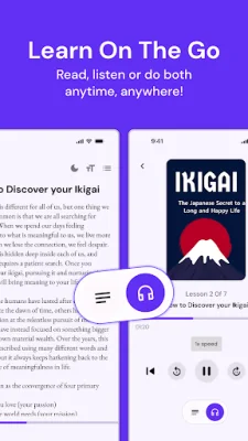 Users can also share daily stories with insights from popular titles on their social media, making learning a more social experience. The app also allows users to take notes and highlight their favorite quotes on the go. It offers an ad-free experience, ensuring that users can focus solely on learning without any distractions.