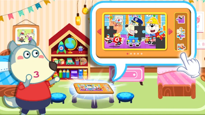 In Wolfoo's Town, children have the opportunity to decorate their dream house and design cozy rooms, visit the townhall and meet friendly townspeople, go shopping and dine out, and even roleplay daily life. They can also explore the city with Wolfoo, from police stations to parks, and discover how the world works in a fun and playful way. This game is not just about building a town, but it's a full-on simulation experience that promotes imagination and curiosity.