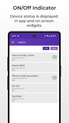 This application, called WolOn, is a highly trusted and widely used tool that has been utilized by over 100,000 users in 170 different countries. It offers a variety of key features that make it a valuable tool for users. These features include the ability to wake devices over both local and wide area networks, as well as the option to use screen widgets for quick and easy wake-on-LAN commands. Additionally, the app supports SecureOn and allows for wake-on-LAN to be sent through a virtual private network. Users can also run SSH commands remotely, with the option to use password or SSH key authentication. The app also offers integrations with popular automation tools like Tasker, MacroDroid, and Automate, as well as a device status monitor and automatic wake-on-LAN triggers for when a device becomes unreachable. Other features include the ability to schedule automatic wake-on-LAN triggers, a network scan for available devices, a sleek Material Design user interface with a dark mode option, and a comprehensive Help section. Despite its many features, the app has a small file size, making it convenient and efficient to use.