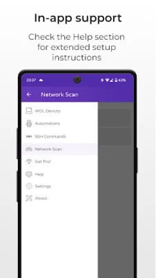 For those unfamiliar with wake-on-LAN, it is a standard in computer networking that allows a device to be turned on or awakened by a network message. The app offers a Help section for users to better understand how this feature works and how to use it effectively.