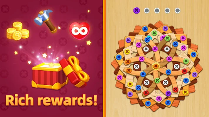 Featuring a peaceful wooden style, this game offers a visually calming experience with soothing ASMR sounds. And if you get stuck on a tricky puzzle, helpful boosters are available to help you overcome the challenge. With diverse modes, rich rewards, and a smooth experience with responsive controls and haptic feedback, Wood Screw Puzzle - Bolts Sort is the perfect companion for anyone who loves relaxing yet brain-teasing puzzles. So collect screws, match shapes and colors, and master the art of order in this addictive and enjoyable game.