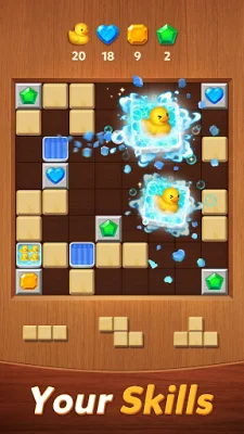 The game features three different modes: Classic, Travel Adventure, and Daily Training. In Classic Mode, players must drag and drop wooden blocks to fill rows or columns and clear them from the board. This requires mastering spatial planning and chasing the ultimate high score before the grid fills up. In Travel Adventure, players can immerse themselves in themed puzzle adventures, solving unique levels to unlock breathtaking visuals and collect stunning themed photos. The Daily Training mode offers fresh challenges every day, keeping players' minds sharp and active.