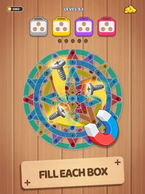 In addition to its engaging gameplay and unique design, Woodle Screw Jam also offers strategic moves, rewards, and tools to assist players in their puzzle-solving journey. Players must carefully plan their moves to unscrew bolts, sort colorful pins, and fill corresponding screw boxes. As they progress through the game, they'll unlock rewards that add layers of excitement and satisfaction, as well as tools to help them tackle even the most complex puzzles.