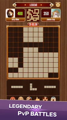 To play Woody Dual Battle, simply drag and drop the given blocks into the grid space and try to make full lines horizontally or vertically to earn points. But be careful, the game will end if you run out of space to place a block. The goal is to reach the target score faster than your opponent within the 3-minute time limit. If no one reaches the target score, the winner is determined by who has the higher score. And if both players run out of moves, the winner is the one with the higher score.