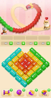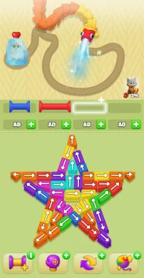 There are many reasons to love this yarn puzzle game. The innovative hybrid gameplay combines the yarn-crushing fun of games like Wool Crush with the strategic color sorting of logic puzzles, and the satisfying launch mechanics of physics games. With hundreds of brain-teasing levels, the challenge grows as you progress, but so does the fun.