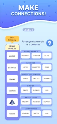 In each level, you'll be presented with a group of seemingly random words. Your goal is to figure out how they are related, whether it be by category, theme, or concept. This requires you to think outside the box and make connections that may not be obvious at first glance.