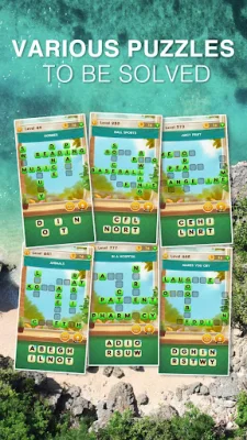 The game features various types of levels, including coin levels, butterfly levels, and wooden block levels. Each puzzle also comes with a clue to help players find related words. Additionally, players can earn daily bonuses and rewards for playing regularly.