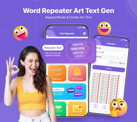 Word Repeater: Art Text Gen is an application that offers a variety of features to enhance your text messaging experience. With this app, you can easily repeat words, phrases, or entire messages with just one tap. This is perfect for creating funny messages or quickly copying and pasting information.