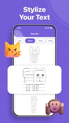 The app also includes a collection of text art, organized into categories for easy browsing. You can copy and share these unique designs with ease, adding a creative touch to your messages.