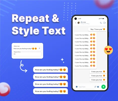 Word Repeater - Multi-Text Gen is an application that offers a variety of features to enhance your messaging experience. With this app, you can easily repeat any word, sentence, or phrase multiple times, making it perfect for creating fun and unique messages. You can also use it as a text bomb maker to add some excitement to your chats.