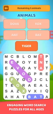 Word Search for Kids is an engaging and educational word search game designed for children aged 4 and up. It offers a fun way for kids to improve their vocabulary, spelling, and reading skills while keeping them fully entertained. The app has a colorful interface, clear navigation, and a variety of game modes that adapt to different reading levels and learning styles.