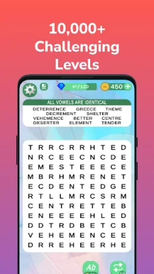Word Search starts with simple levels to help you get familiar with the rules, but as you advance, the puzzles become more challenging. However, there is no time limit, so you can take your time and enjoy the game without any stress. If you do get stuck, there are hints available to help you out.
