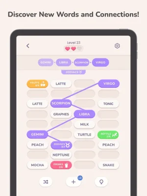 Word Weaver is an exciting word association game that offers players a unique and engaging gameplay experience. With each connection you make, you get one step closer to winning levels and unlocking new challenges. This game is perfect for anyone looking to expand their vocabulary and improve their logical thinking skills while having fun at the same time.