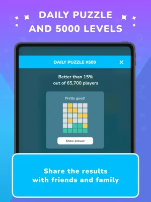 In the Daily Puzzle, you will be presented with a word that is common to all players. As you progress through the Journey levels, the difficulty of the words will increase, allowing you to test and expand your vocabulary. You can also compare your results with your friends to see who has the largest vocabulary.