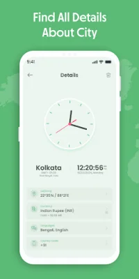 In addition to displaying the time, the app also provides information on the location, currency, language, and dial code for the selected city. Users can even tap on the clock to navigate to the location on a map. The app also offers the option to adjust the theme between Auto, Dark, or Light mode.