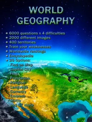 The application also includes an encyclopedia section, providing users with additional information and facts about various countries and regions. This can be a great resource for those looking to expand their knowledge beyond the game itself. The encyclopedia covers 26 different topics, including finding countries on a map, identifying capital cities, recognizing flags, and more.