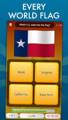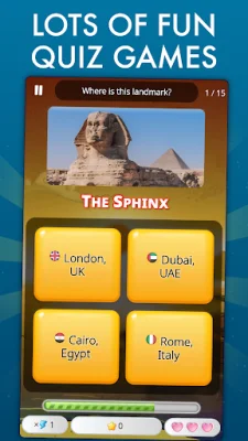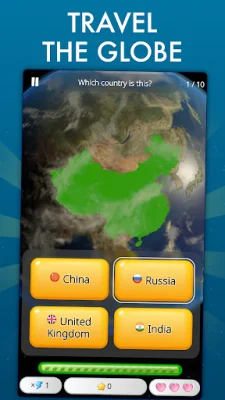 Explore the world through play with various quiz modes covering topics such as world capitals, countries, flags, landmarks, currencies, and regions. You can choose to play short quizzes to sharpen your skills or take on harder challenges to master world geography.