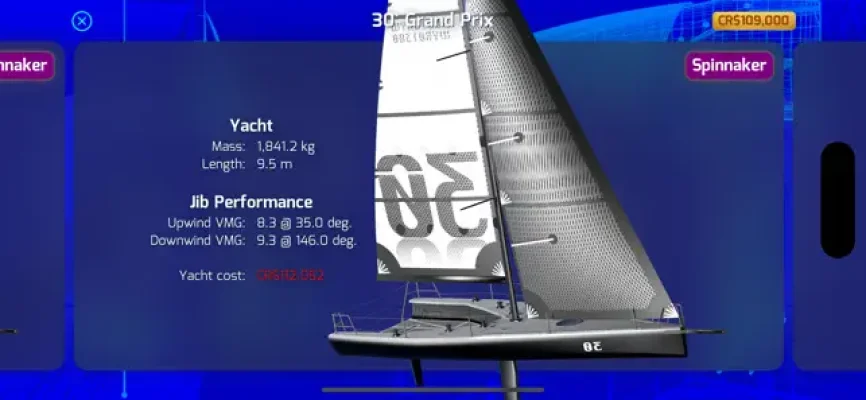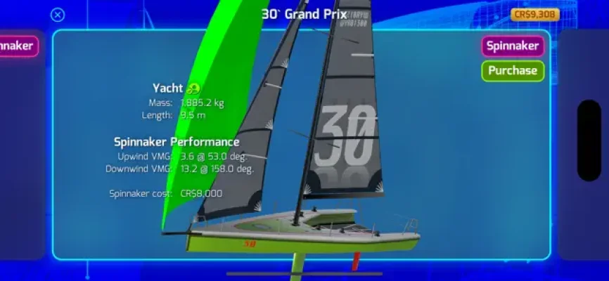 You can choose from two different types of yachts in the app: the 30 Foot Grand Prix with an optional spinnaker, and the 15 Foot Skiff with an optional spinnaker. These yachts have a simple helm mechanic, making it easy for anyone to pick up and play. However, the underlying physics of the game are complex, providing a challenging and engaging experience for players.