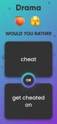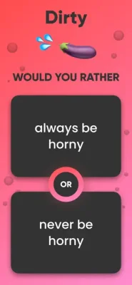 This application is a fun and interactive game that is similar to popular party games such as "Never Have I Ever" and "Truth or Dare". It allows players to make their way through a series of questions and make difficult choices between two options. The game features 6 different decks with a variety of questions, making it an ideal game for different occasions such as slumber parties, 2-player games, and more. The questions range from innocent and lighthearted to more challenging and thought-provoking ones.