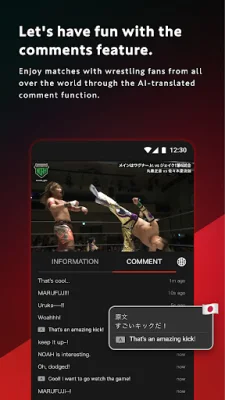 Connect with fans worldwide through our interactive comment feature, complete with AI translation to break down language barriers. And for an even bigger screen experience, cast the action to your TV with Chromecast support. With WRESTLE UNIVERSE, you can truly immerse yourself in the global wrestling community.