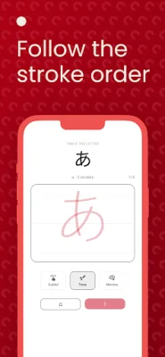 The app offers a calm and effective learning experience for those who want to improve their Japanese handwriting skills or practice writing Hiragana step by step. It provides various features to help users learn, such as letter tracing, learning stroke order, writing from memory, and improving handwriting through repetition.