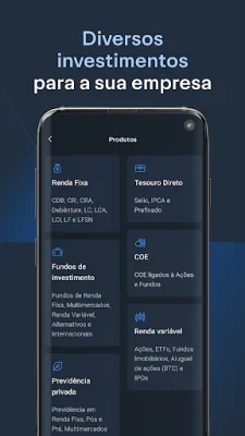 O app também permite investimentos em renda variável, como fundos de investimentos, FII, COE, ações da bolsa de valores e trading. Além disso, é possível investir nas maiores empresas do mundo através dos BDRs (Brazilian Depositary Receipts), uma opção interessante para diversificar a carteira de investimentos.