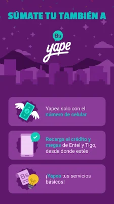 Yape Bolivia es una aplicación de billetera digital que cuenta con más de 3 millones de usuarios y 1.5 millones de negocios en todo el país. Esta aplicación te permite realizar transacciones sin comisiones ni la necesidad de tener una cuenta bancaria. Puedes enviar dinero a tus contactos solo con su número de celular o escaneando un código QR. También puedes utilizarla para pagar servicios básicos como luz, agua, teléfono e impuestos, así como recargar crédito a tu celular o comprar paquetes de megas para las líneas de Entel y Tigo.