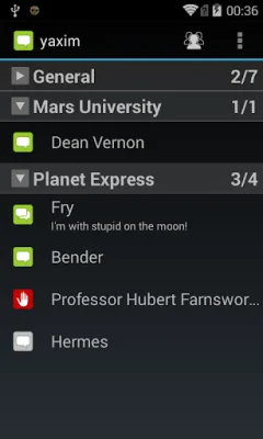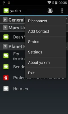Furthermore, yaxim allows for automatic connection after the phone is turned on, making it convenient for users to quickly access their messages without having to manually open the application. The application also offers roster management support, allowing users to easily organize and manage their contacts.