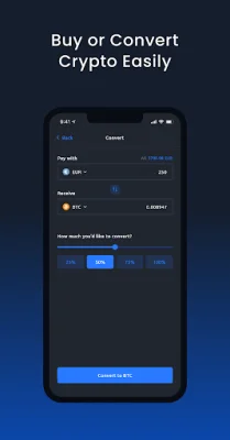 Our app includes a universal crypto exchange where you can trade crypto, fiat, and stablecoins with competitive fees. You can also effortlessly buy BTC, ETH, USDT, BCH, and other tokens securely with our trusted wallet.