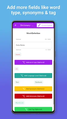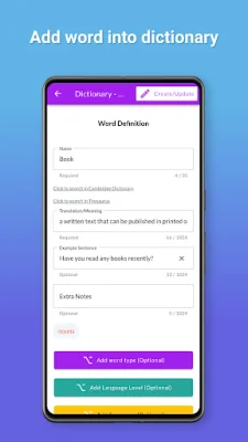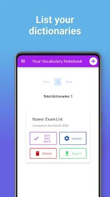 To get started, simply create a dictionary by giving it a name. From there, you can add words as you come across them. If you need some inspiration, you can browse through the app's predefined word lists and easily add them to your dictionary. For a more interactive learning experience, you can create quizzes and word games to test your knowledge. This not only helps with retention but also makes learning more enjoyable.