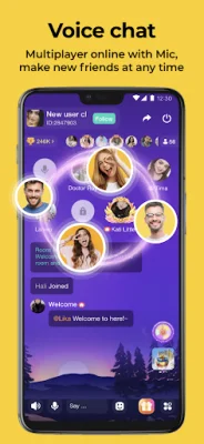 What sets YouStar apart is the option to chat freely without revealing your face. You can have voice conversations with your friends and groups about anything that interests you, such as music, travel, food, sports, or games. Additionally, you can personalize your chat experience by playing your favorite music, singing karaoke, or playing various interesting games.