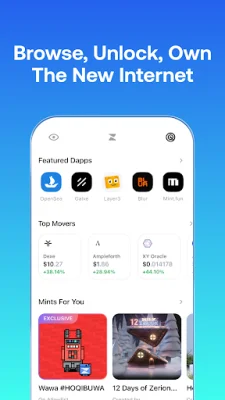 With Zerion Wallet, you can browse, unlock, and own the new internet. The app helps you discover trending dApps, wallets, tokens, and mints that are relevant to you, allowing you to stay on top of the latest trends and find alpha as you explore Web3.