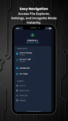 But that's not all - ZeroFill also offers advanced privacy and safety tools, such as a secure app lock, incognito stealth mode, and secure erasure protocols. And with our modern and smart interface, you can easily visualize your storage and track the progress of your data destruction.