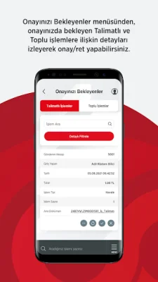 Talimatlı işlemler menüsü sayesinde EFT, Havale, Fatura, Vergi ve SGK gibi işlemlerinizi kolayca yapabilirsiniz. Bu işlemleri yaparken, talimatlarınızı takip edebilir ve temsilciniz ile anlık mesajlaşma yoluyla iletişime geçebilirsiniz. Ayrıca, işlemlerinizin dekontlarını da izleyebilirsiniz. Yetkinize göre talimatları onaylayabilir, reddedebilir veya iptal edebilirsiniz. Bu sayede, finansal işlemlerinizi daha kontrollü bir şekilde gerçekleştirebilirsiniz.