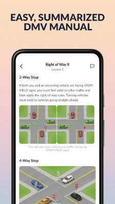 The app is a comprehensive study tool that covers all the necessary material for the DMV test. It includes a summarized version of the DMV handbook for most states, as well as over 550 state-specific questions that are similar to the real test. The app also uses real-life traffic situations and illustrations to help users learn the rules of the road quickly and efficiently.